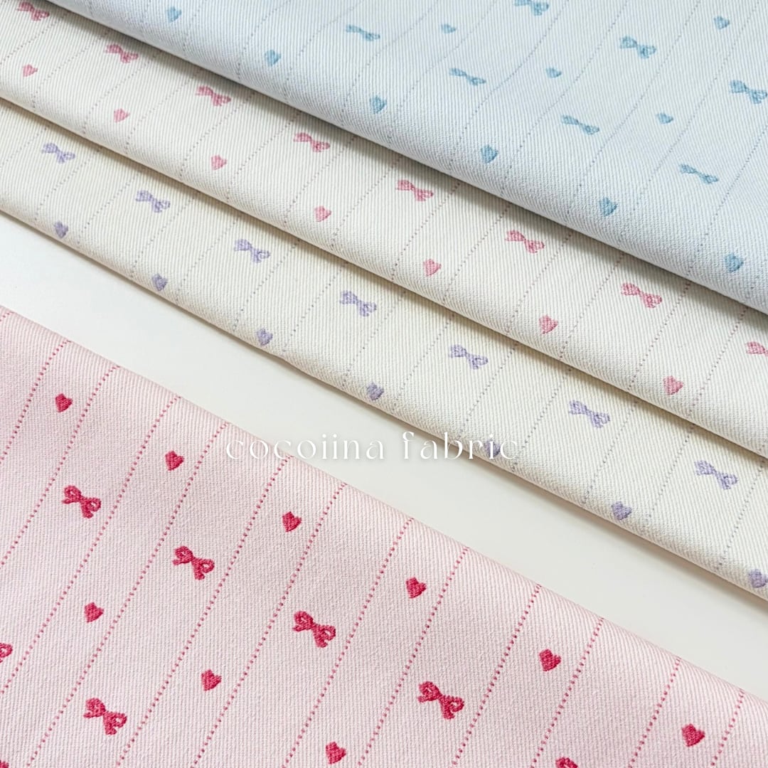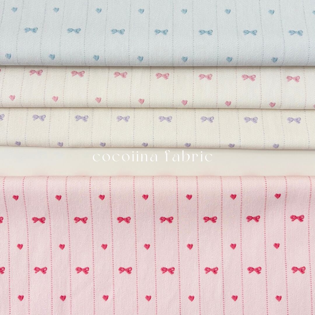 =====【予約】=====10数 ツイル ハート リボン デニム 韓国生地 大人服 子ども服 犬服